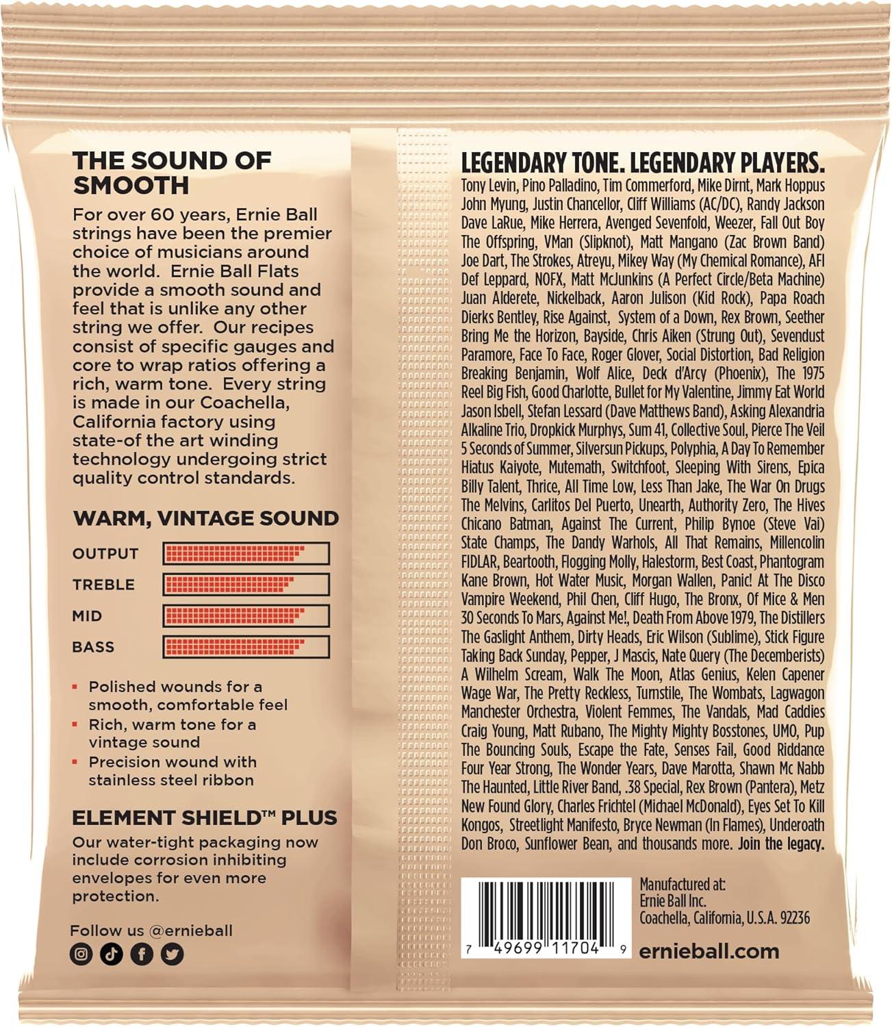 Ernie Ball Custom Gauge Flatwounds deliver solid low-end with reduced finger noise