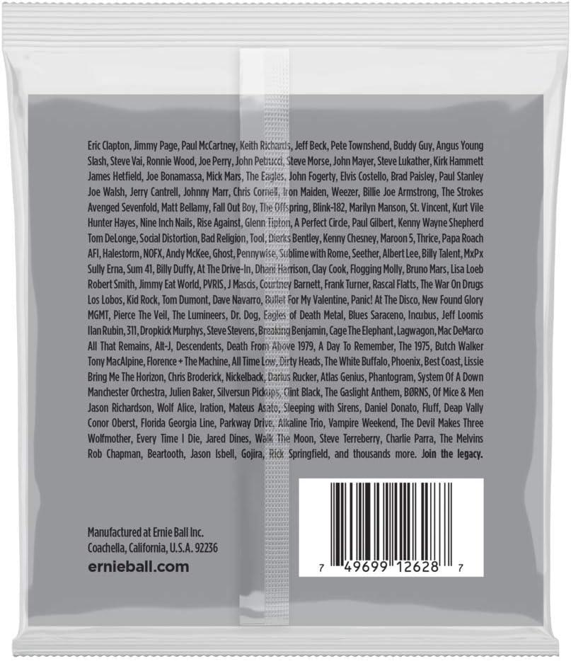 Made from nickel-plated steel wire wrapped around a hex-shaped steel core wire. The plain strings are made of specially tempered tin-plated high-carbon steel, resulting in a bright and well-balanced tone