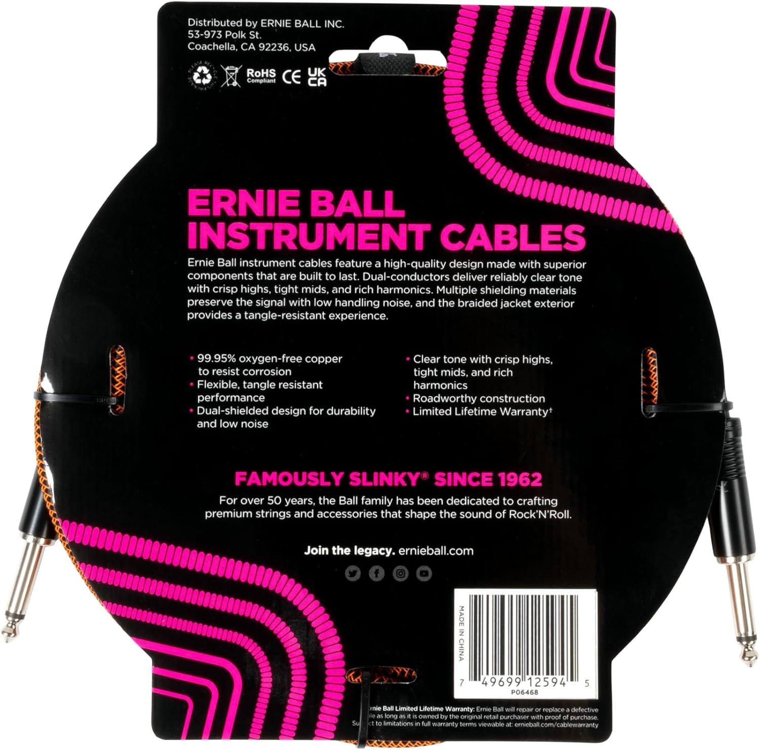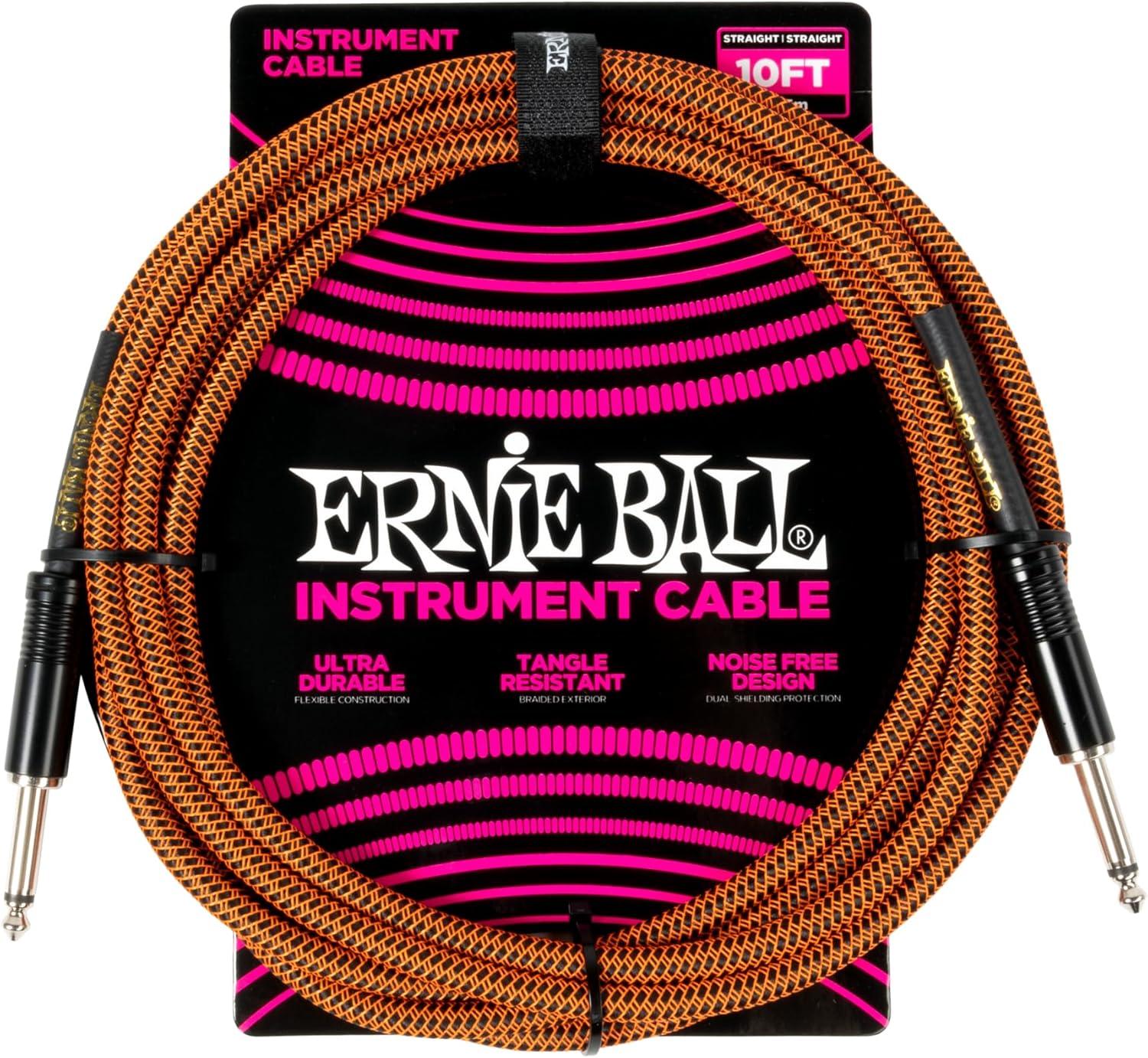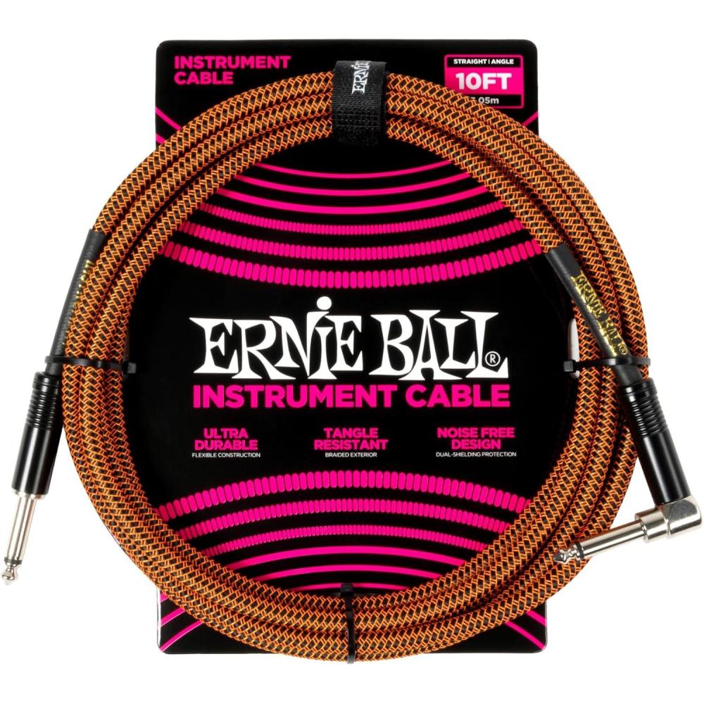 Ernie Ball Braided Instrument Cable, Straight/Angle, 10ft, Neon Yellow (P06080)(Pumpkin Pie)