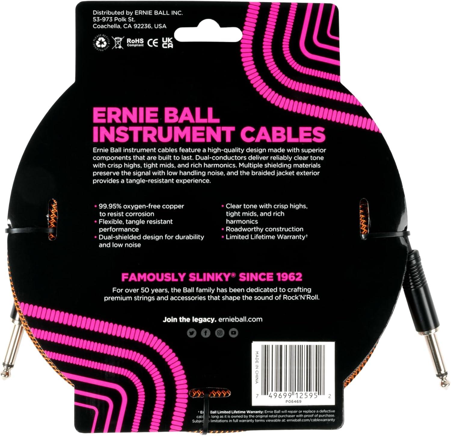 Ernie Ball instrument cables feature a high-quality design made with superior components that are built to last. Dual-conductors deliver reliably clear tone with crisp highs, tight mids, and rich harmonics. Multiple shielding materials preserve the signal with low handling noise, and the braided jacket exterior provides a tangle-resistant experience. Cable length 10ft (3.048m)