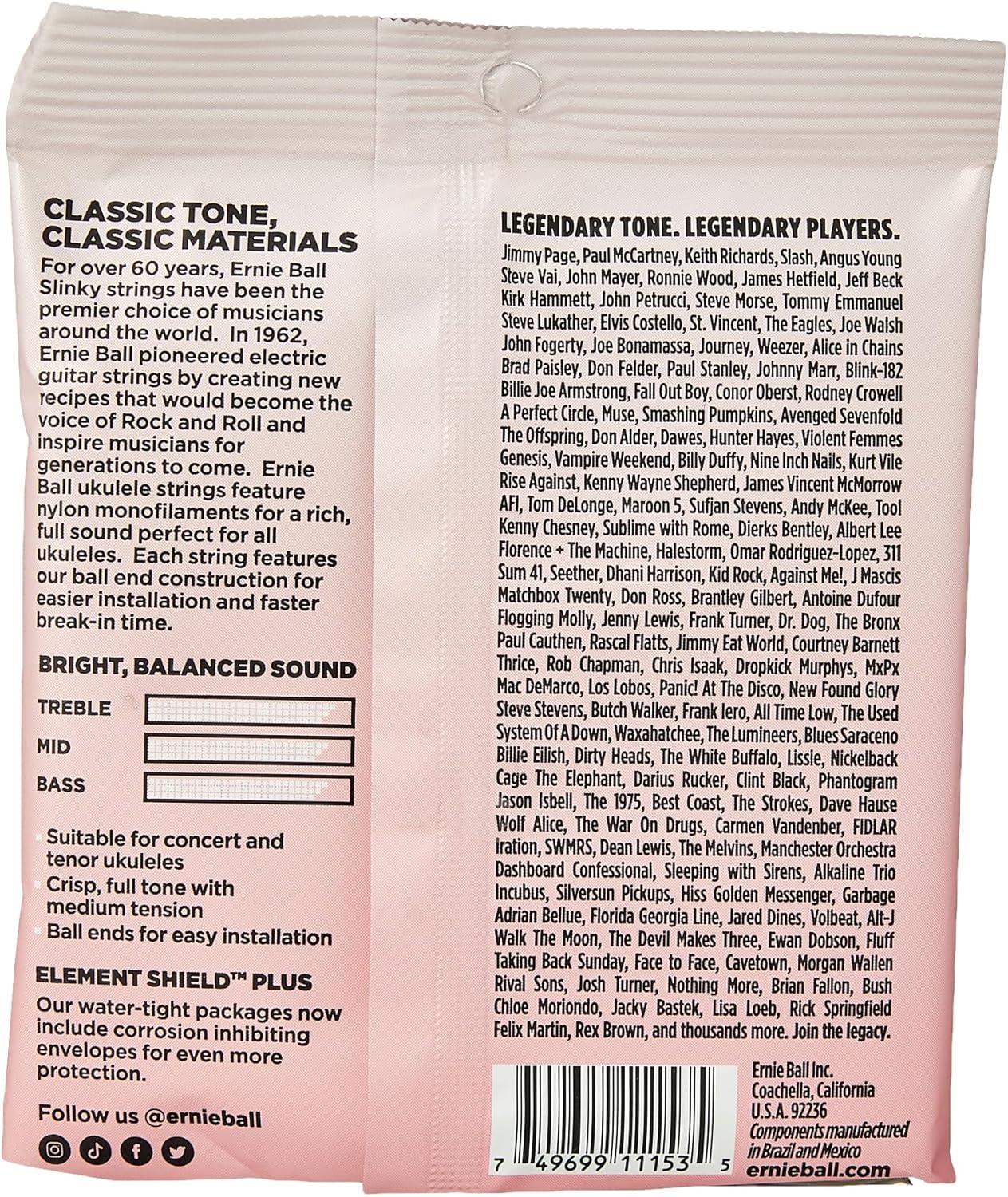 Ernie Ball Concert & Tenor Nylon Ball End Ukulele Strings Wound G, Clear (P02330)(Black)