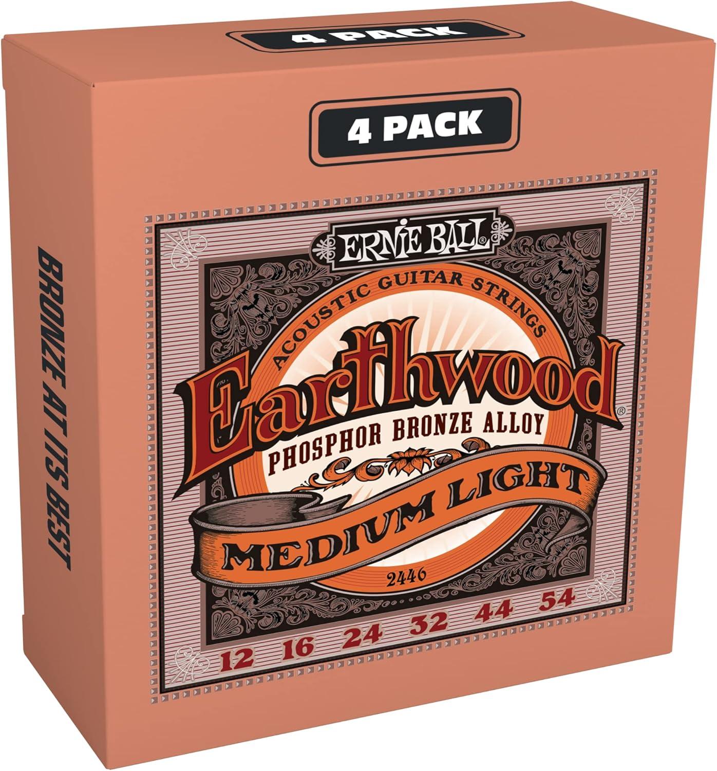 Ernie Ball Earthwood Custom Light Phosphor Bronze Acoustic Guitar Strings, 11.5-54 Gauge (P02145)(Medium Light (12-54))
