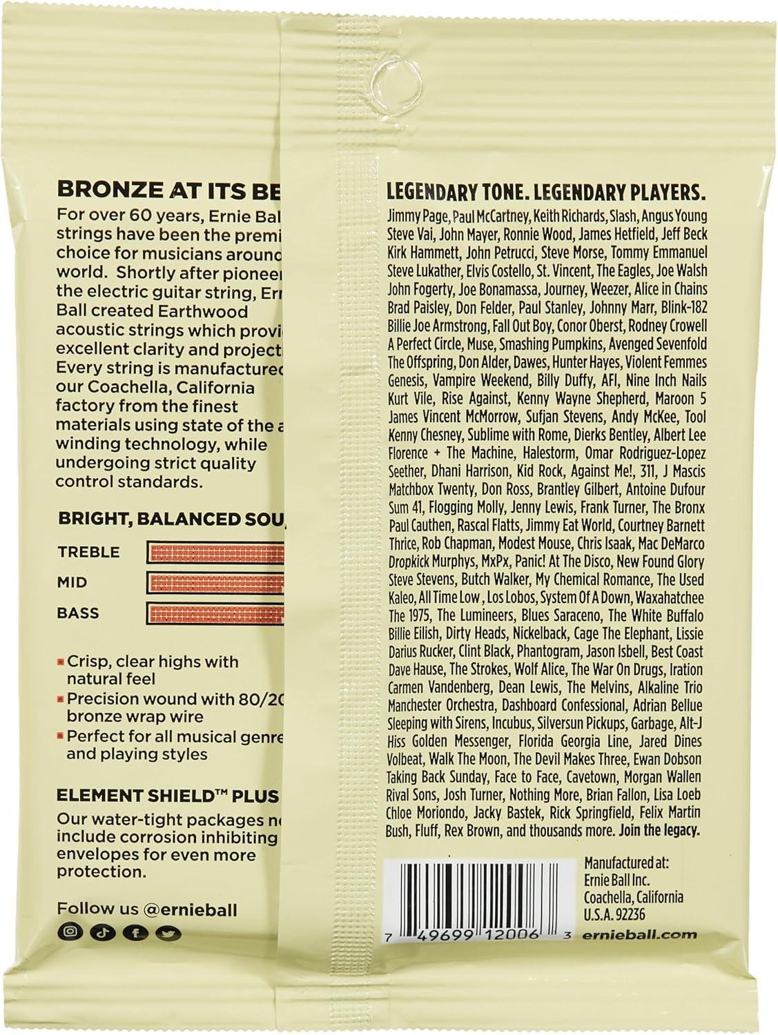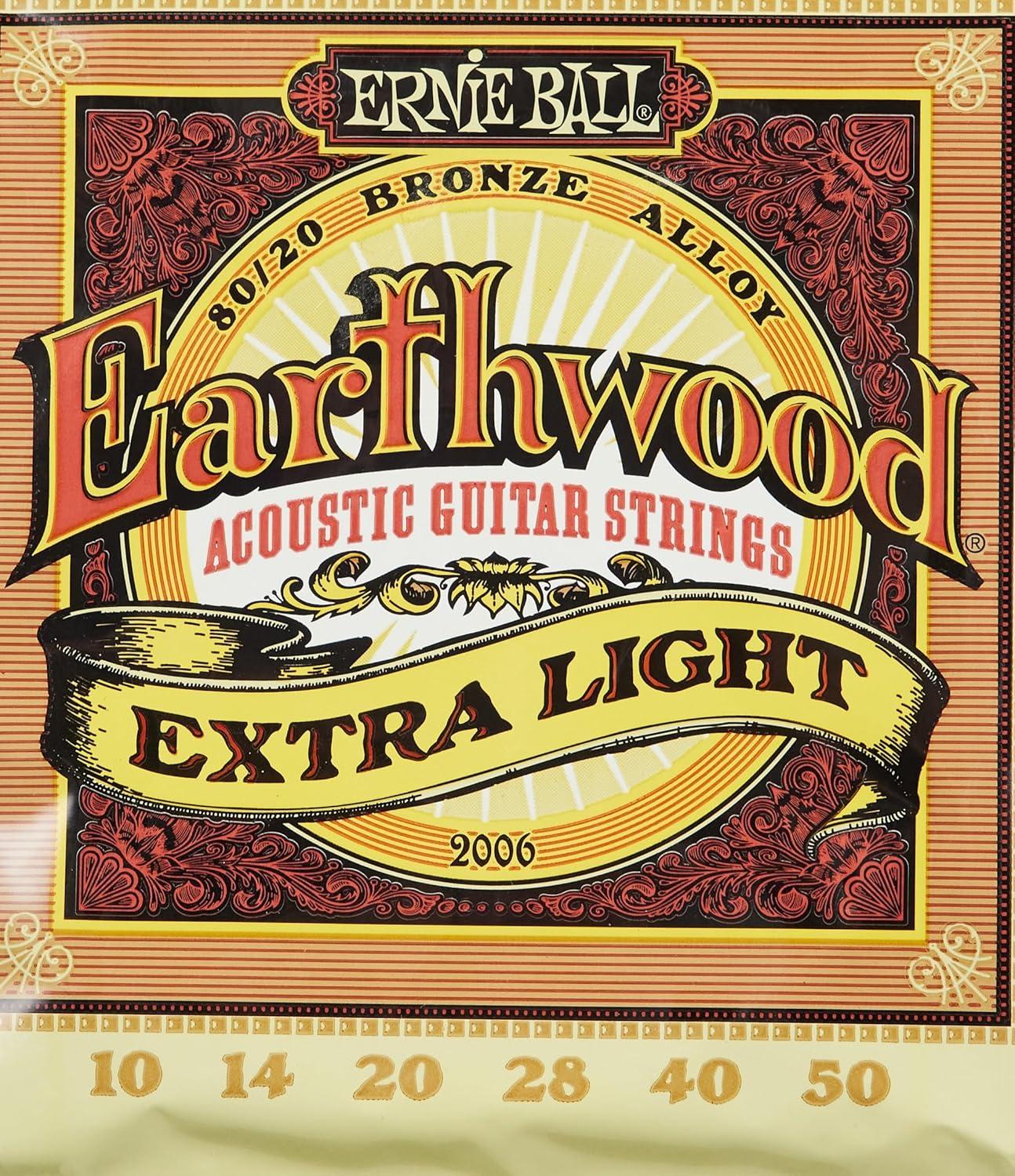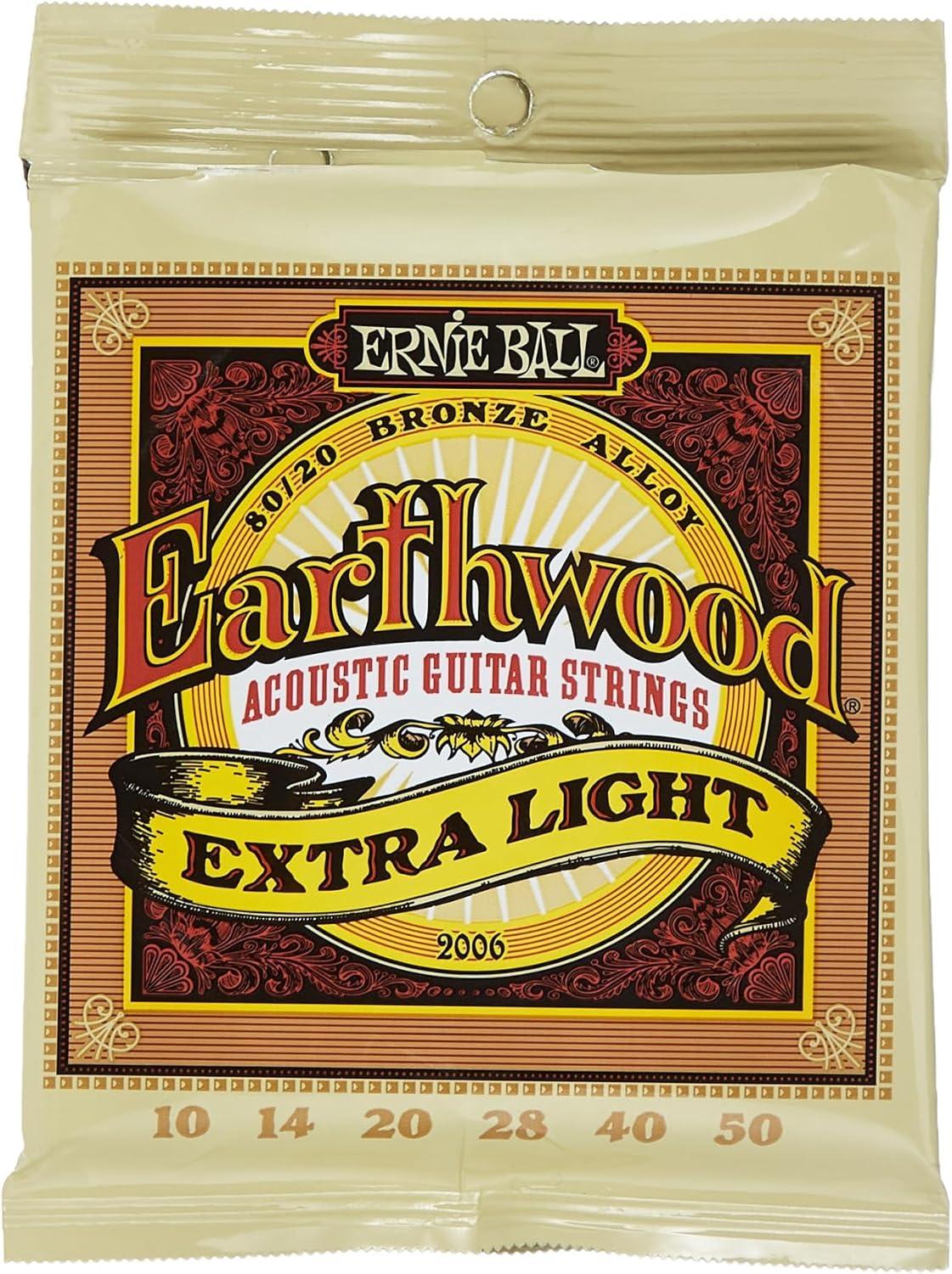 Ernie Ball Earthwood 80/20 Bronze acoustic guitar strings are made from 80% copper, 20% zinc wire wrapped around hex-shaped, brass-plated steel core wire. These acoustic guitar strings produce a bright, balanced sound with pleasing overtones. Gauges .013, .017, .026, .034 .046, .056.