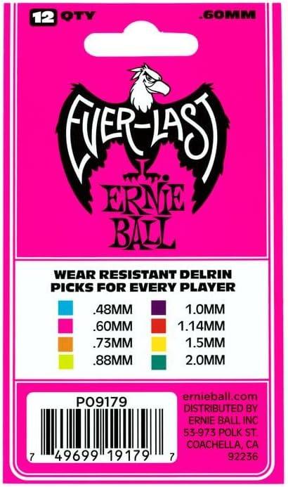Ernie Ball Everlast Guitar Picks, Pink .60mm, 12-pack (P09179)(Purple (1. mm))