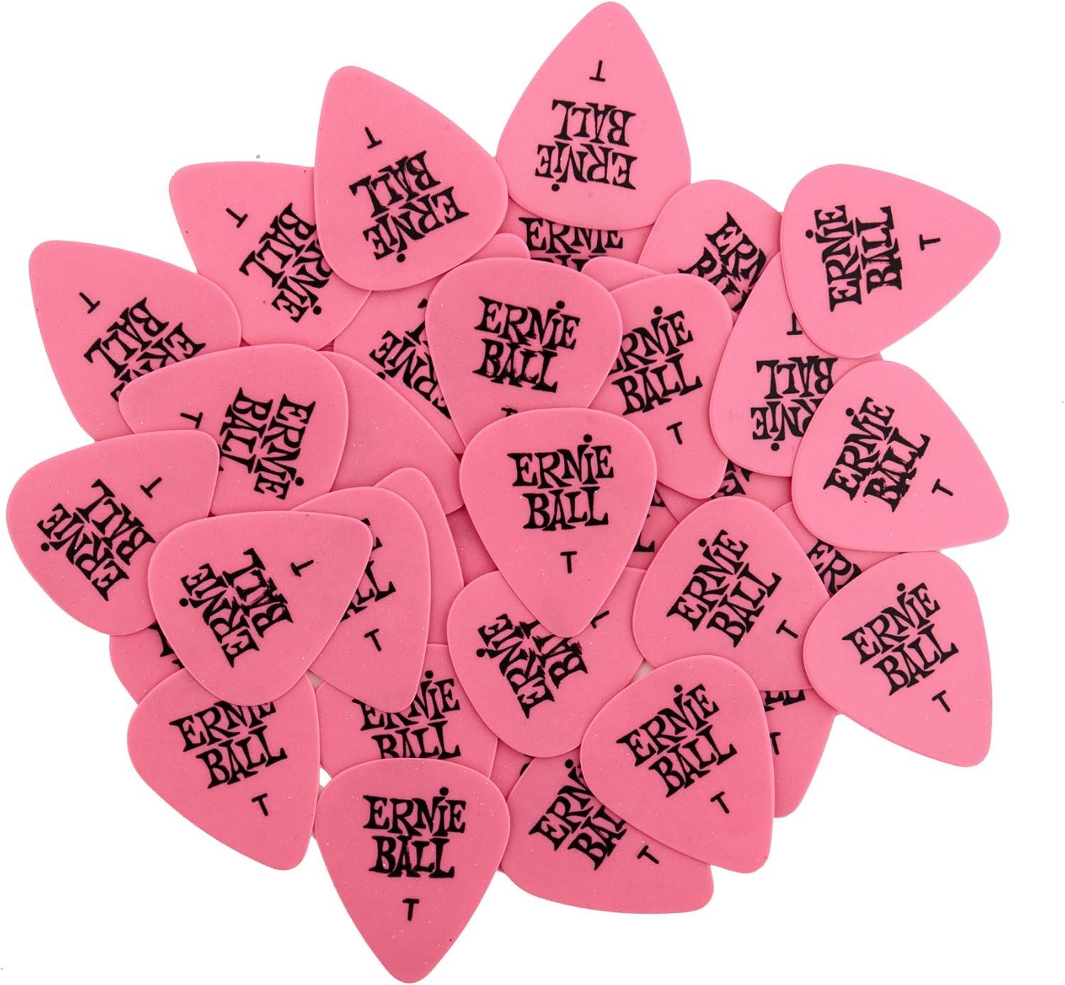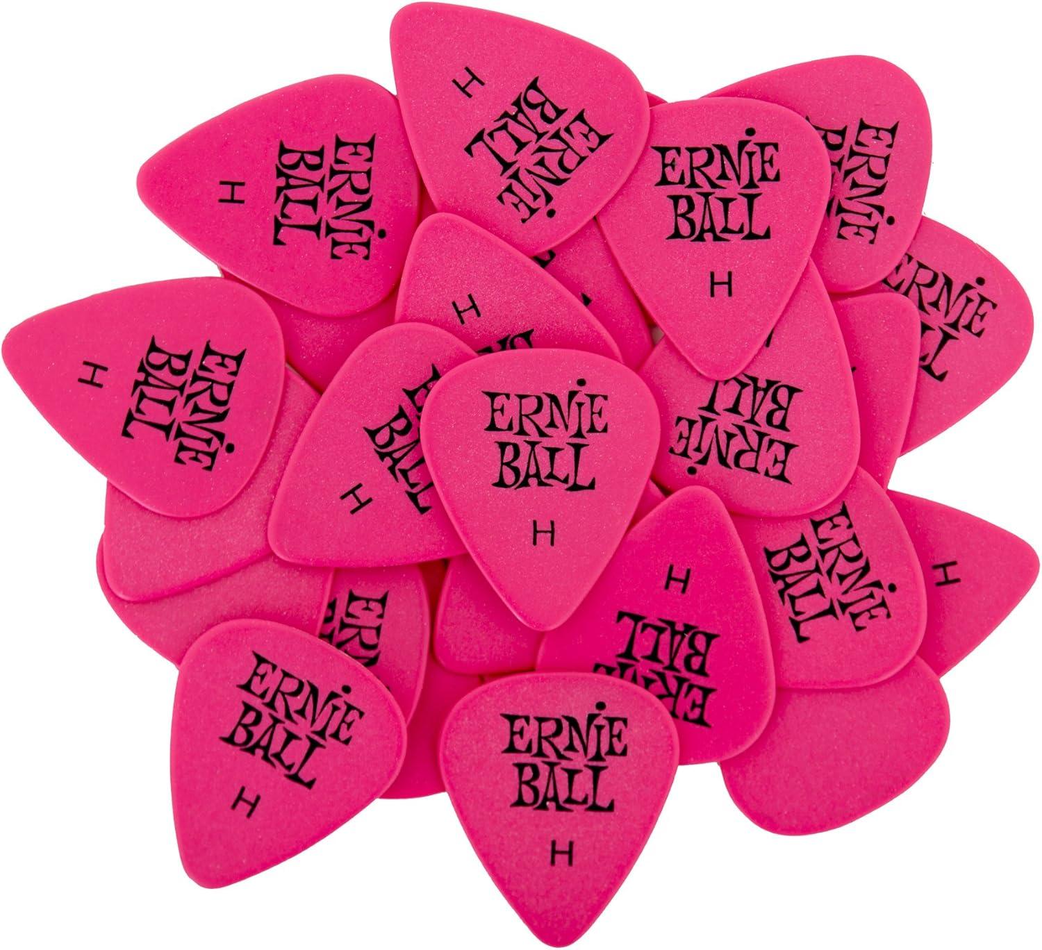 Ernie Ball Guitar Picks, Medium, Super Glow, 12-pack (P09225)(Pink)