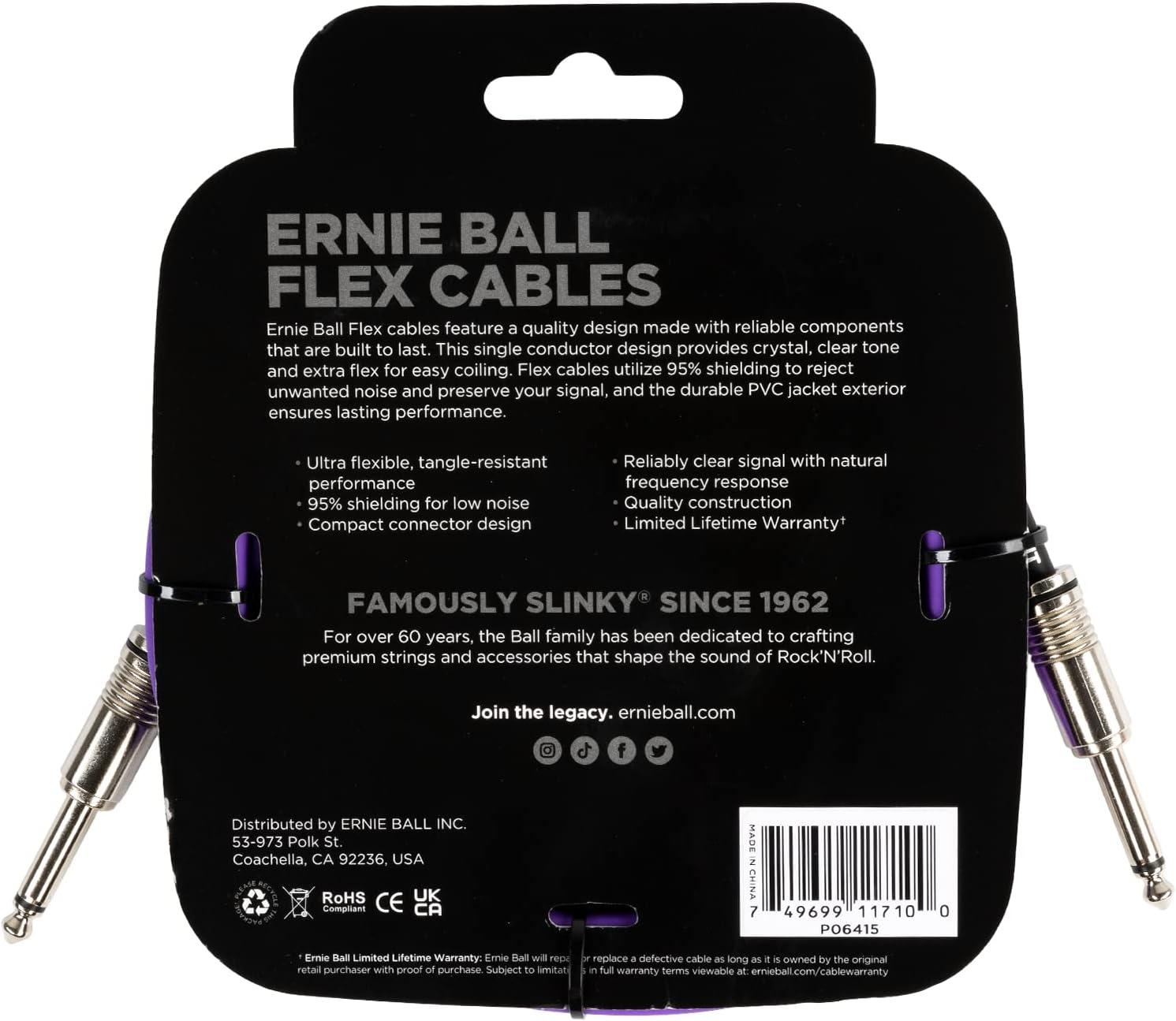 Ernie Ball Flex cables feature a quality design made with reliable components that are built to last. This single conductor design provides crystal-clear tone, and extra flex for easy coiling. Flex cables utilize 95% shielding to reject unwanted noise and preserve your signal, and the durable PVC jacket exterior ensures lasting performance. They feature compact connectors and come in more compact packaging for easier merchandising on wall or freestanding displays.