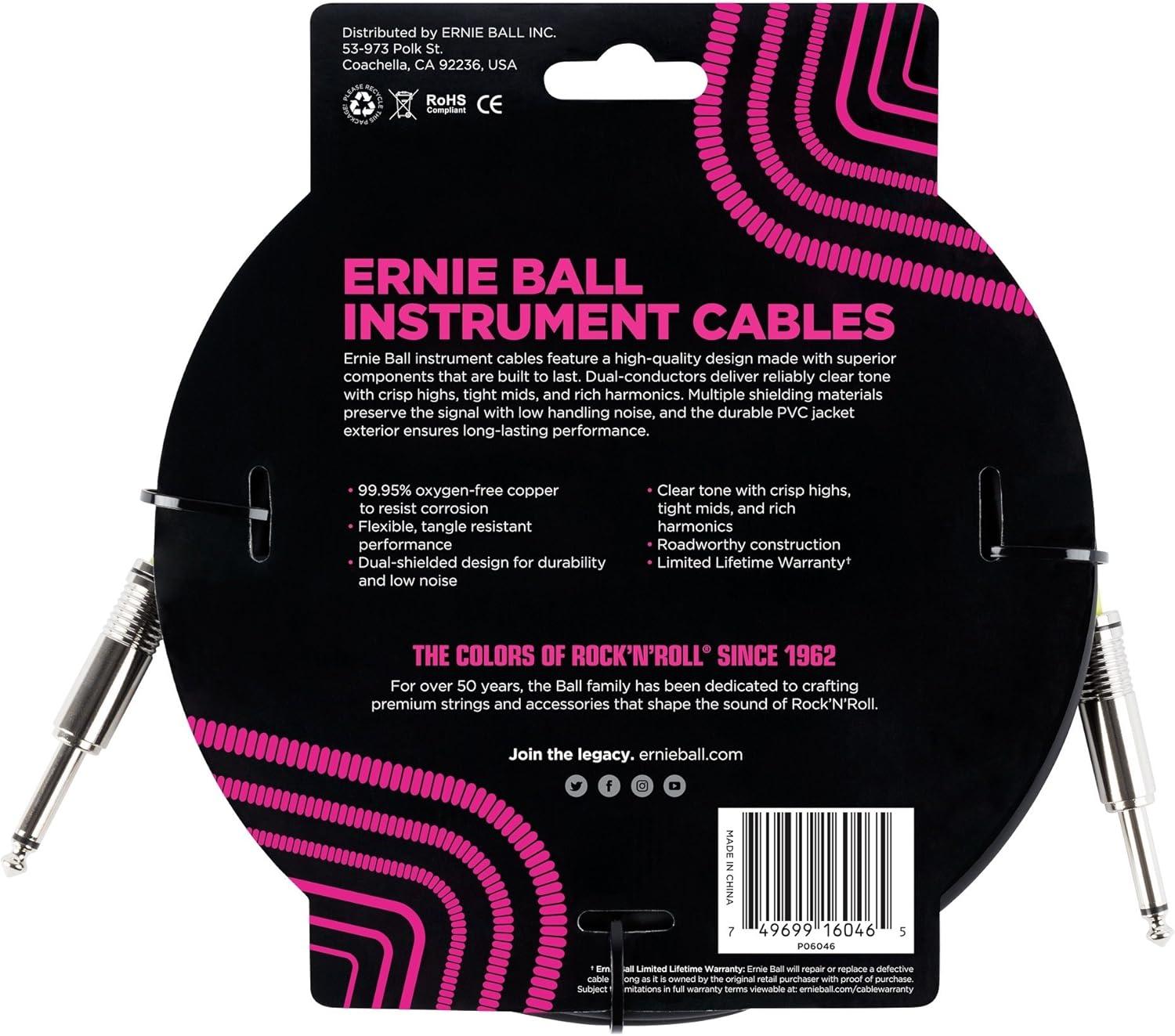 Ernie Ball electric guitar cables and bass guitar cables are built to last. Quality components and superior design produce a guitar cable that is tough and sounds great. Dual-conductors deliver reliably clear tone with crisp highs, tight mids, and rich harmonics. Multiple shielding materials preserve the signal with low handling noise, and the PVC jacket exterior provides a tangle-resistant experience. Whether on the stage or in the studio, Ernie Ball’s guitar cables will not disappoint. Color: White. 10 foot guitar cable (3.048m).