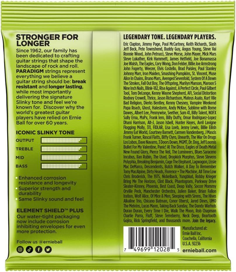 Ernie Ball Slinky Paradigm electric guitar strings are the strongest, most break-resistant guitar strings available today. Distilling everything we’ve learned about string technology since 1962, these cutting-edge string sets deliver world-renowned Slinky tone and feel, fused with ultimate strength for long-lasting durability. In addition to our Everlast nanotreatment, our revolutionary plasma-enhanced wrap wire results in a string that repels oils, resists corrosion, and keeps your tone alive for longer. Behold the Paradigm shift.
