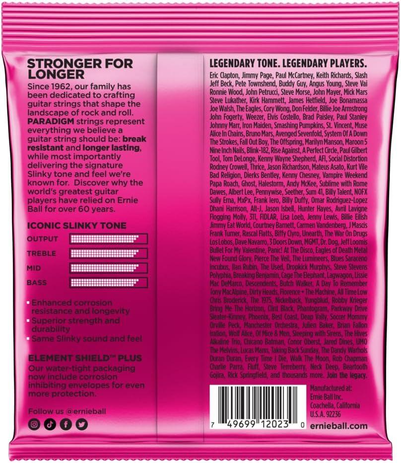 Ernie Ball Slinky Paradigm electric guitar strings are the strongest, most break-resistant guitar strings available today. Distilling everything we’ve learned about string technology since 1962, these cutting-edge string sets deliver world-renowned Slinky tone and feel, fused with ultimate strength for long-lasting durability. In addition to our Everlast nanotreatment, our revolutionary plasma-enhanced wrap wire results in a string that repels oils, resists corrosion, and keeps your tone alive for longer. Behold the Paradigm shift.
