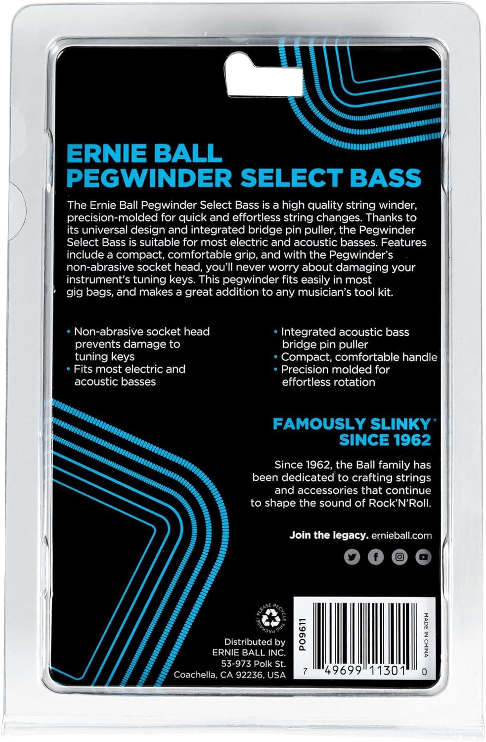 Ernie Ball Pegwinder Plus features an ultra-smooth ball bearing design for fast and easy string changes. Thanks to its universal peghead design and integrated bridge pin puller, the Pegwinder Plus is suitable for most electric and acoustic guitars and basses. Features also include a soft, comfortable grip and a scratch-free peghead to prevent unwanted damage during string installation. This compact pegwinder fits easily in most cases and gig bags and makes a great addition to any musician’s tool kit.