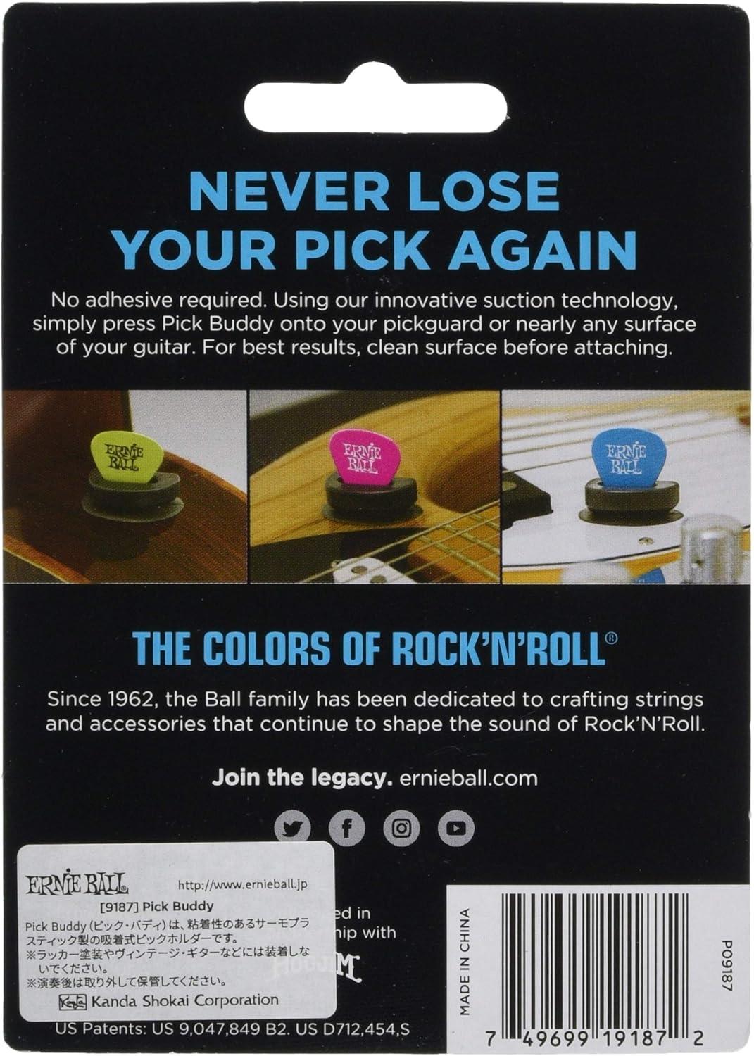 Adhesive free compact thermoplastic holder that keeps your pick close at hand! Great for musicians who combine various finger-style / plectrum techniques on bass or guitar. Using our innovative self-adhesive suction technology simply press Pick Buddy onto your pickguard or nearly any surface of your guitar for instant access to your pick. Part number 9201.