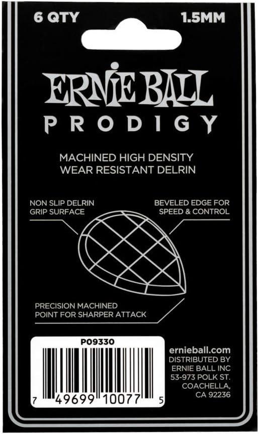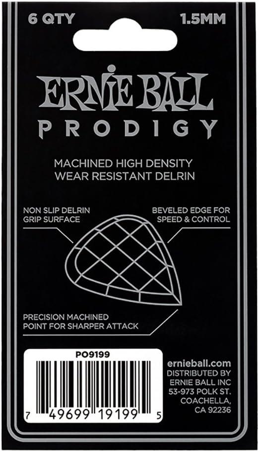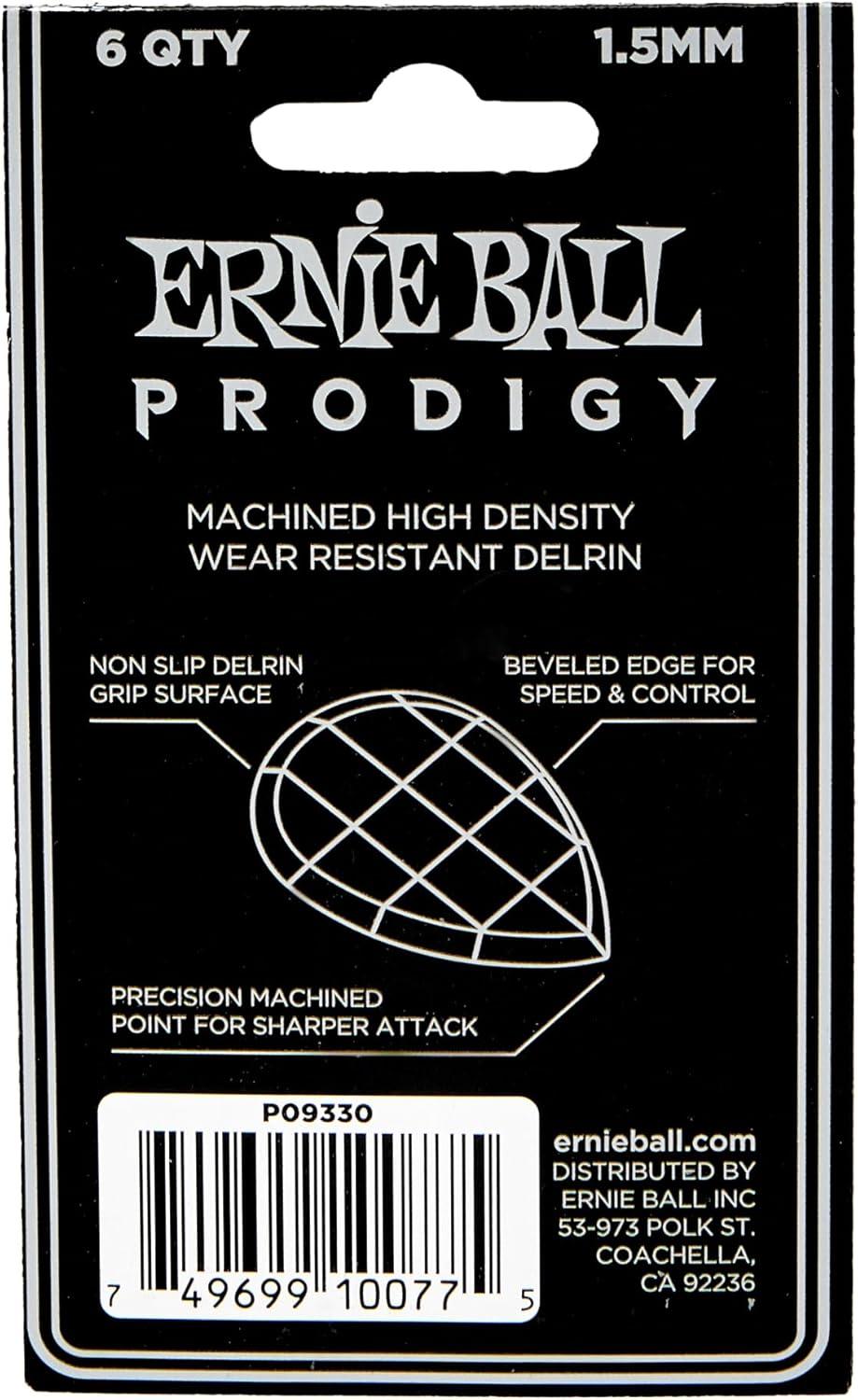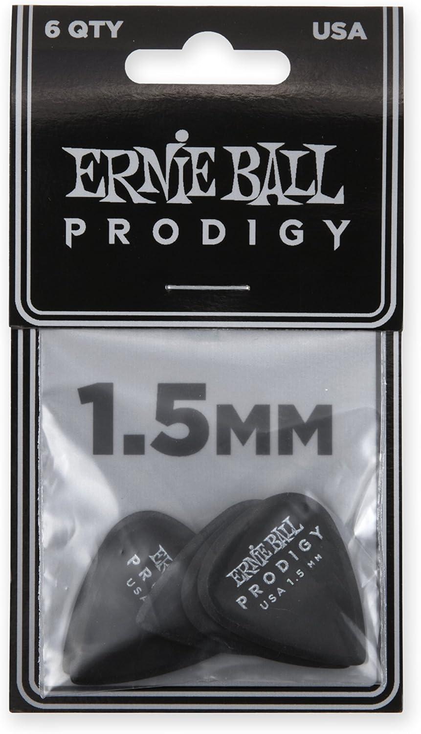 Ernie Ball Prodigy Guitar Picks, Standard, Black 1.5mm, 6-pack (P09199)