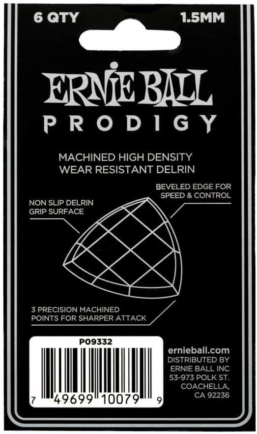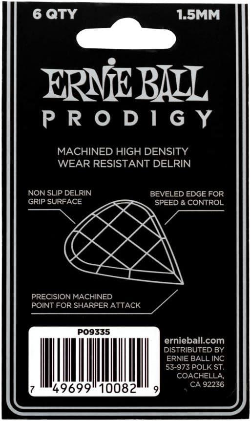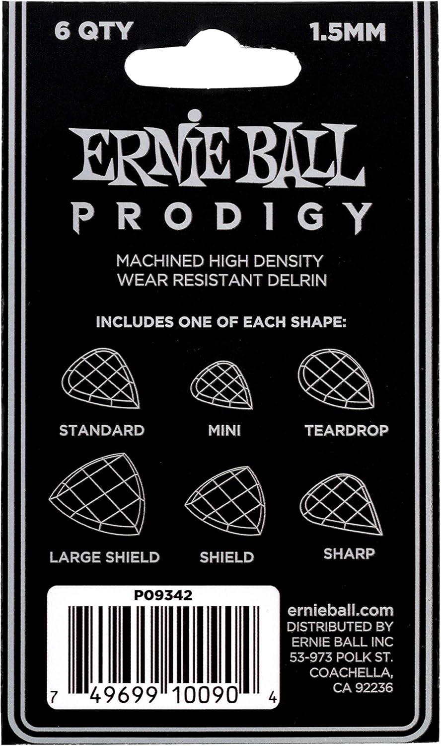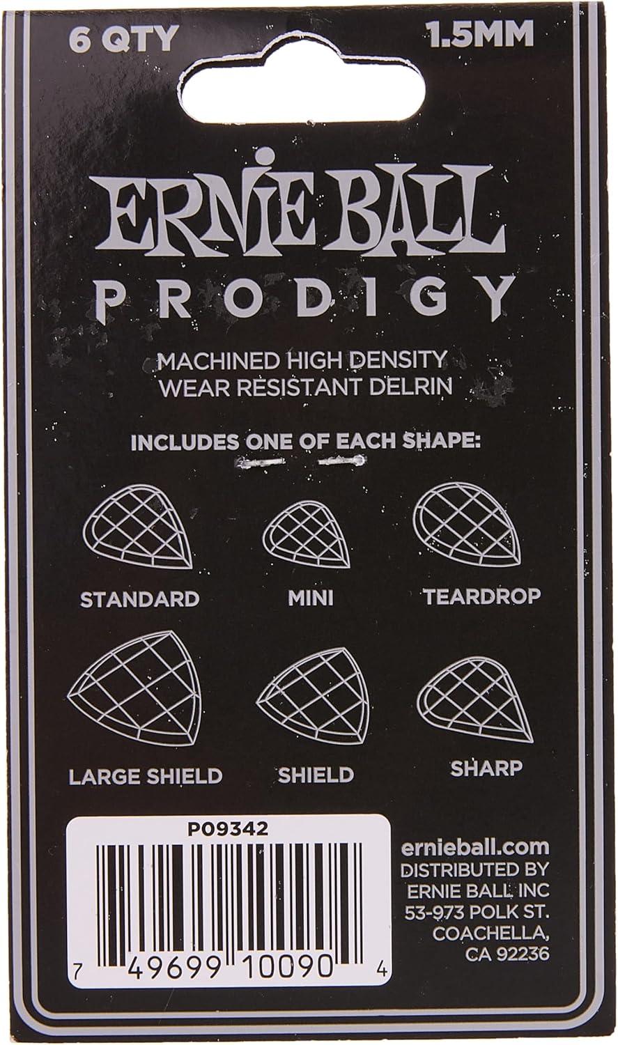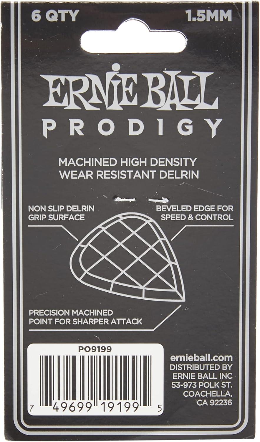 Ernie Ball Prodigy Guitar Picks, Standard, Black 1.5mm, 6-pack (P09199)