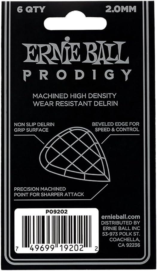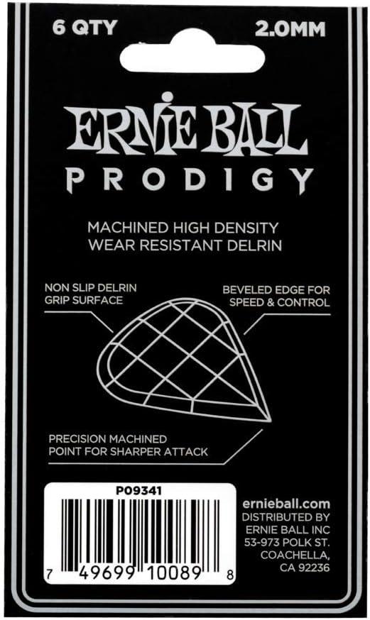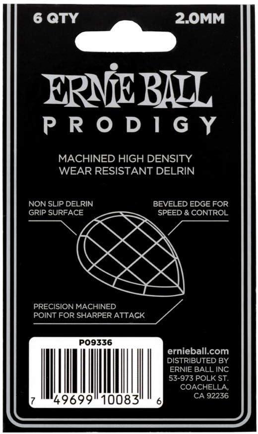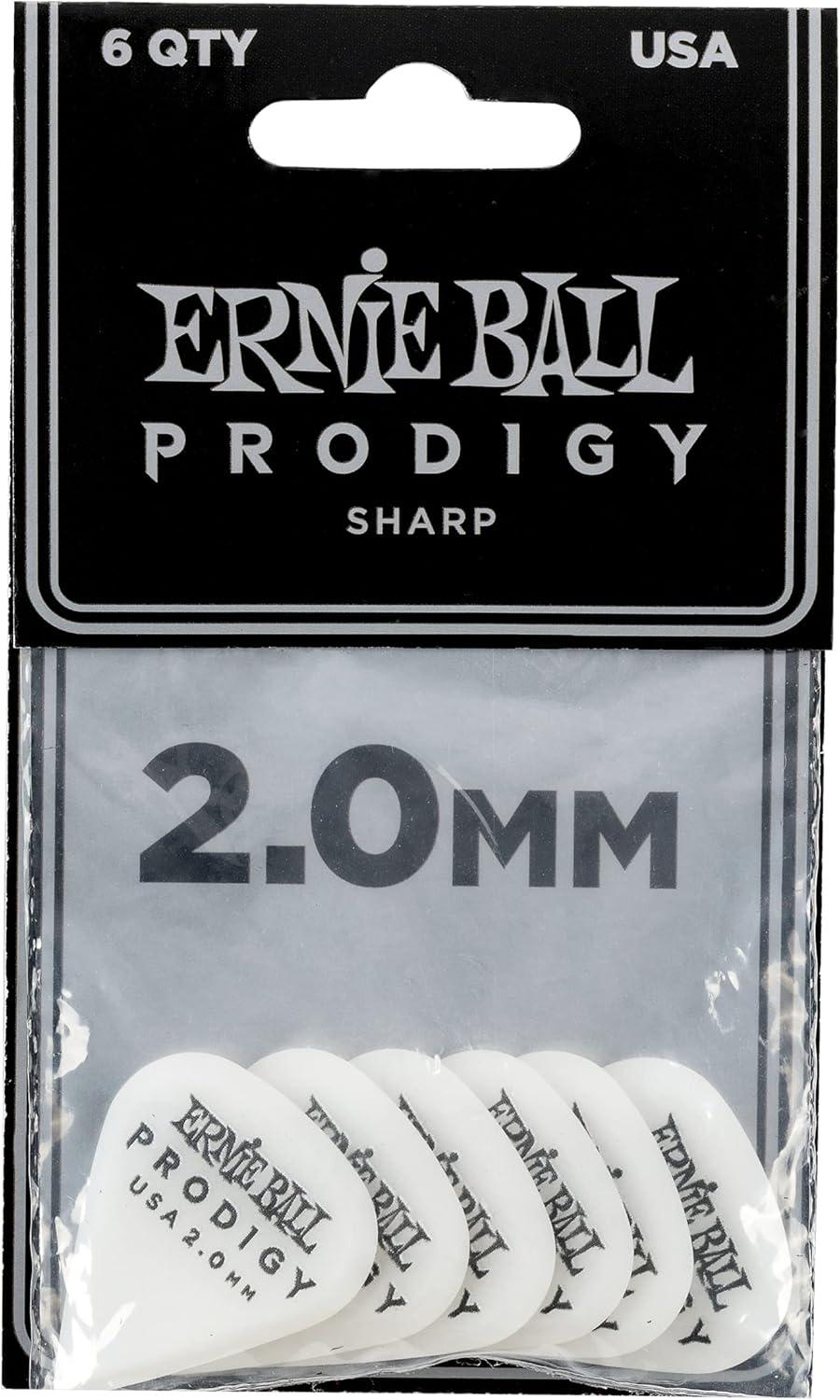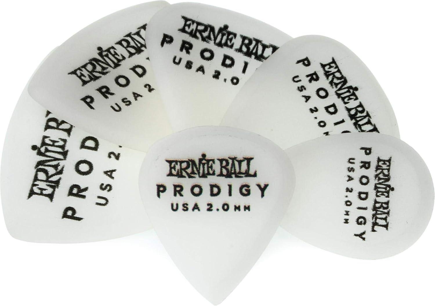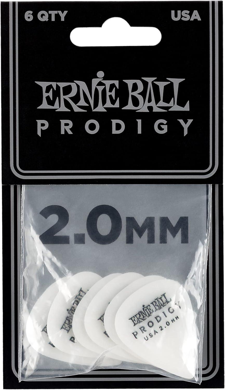 Ernie Ball Prodigy Guitar Picks, Standard, Black 1.5mm, 6-pack (P09199)(White (2.0mm))