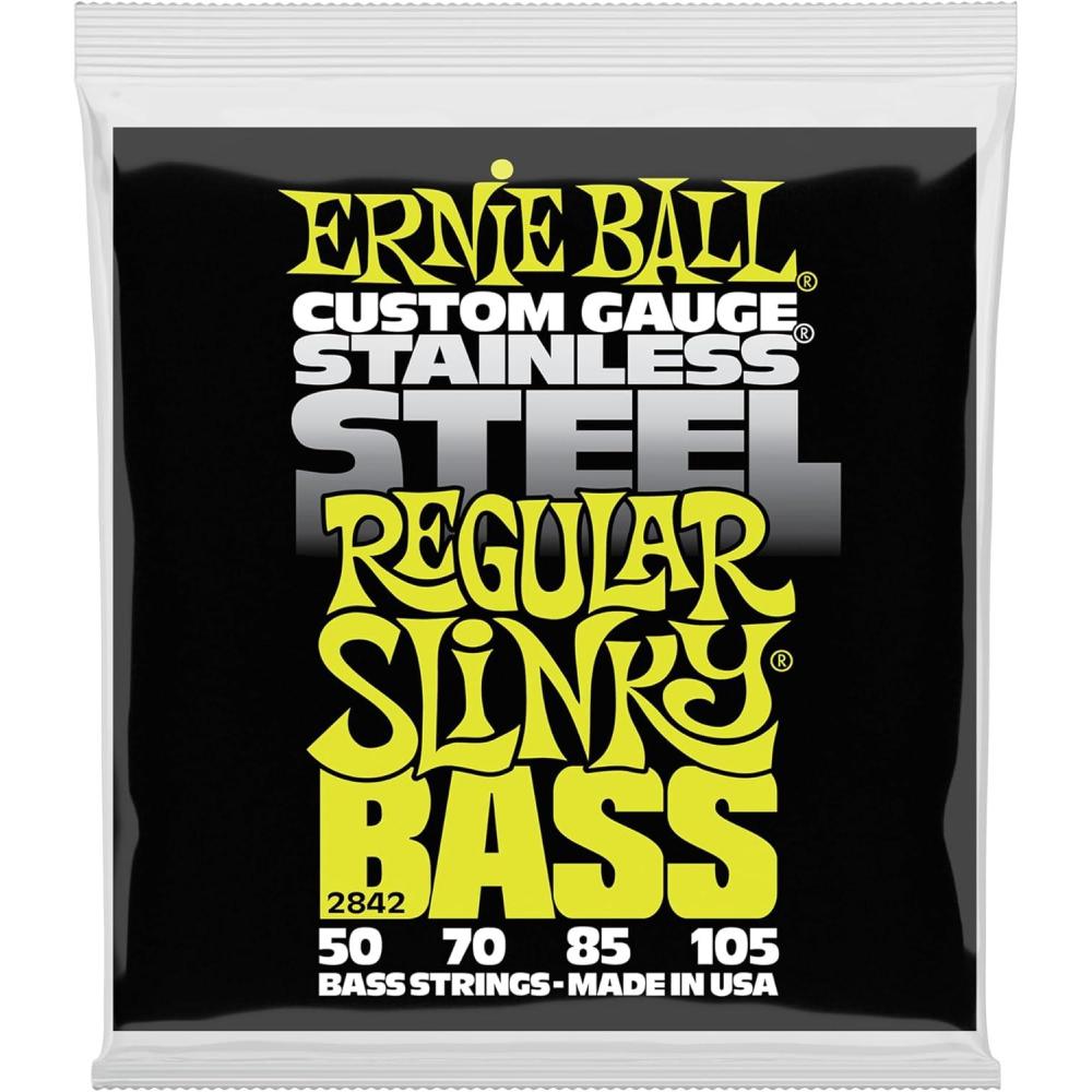 Ernie Ball Regular Slinky Stainless Steel Bass Guitar Strings, 50-105 Gauge (P02842)(Regular (50-105))
