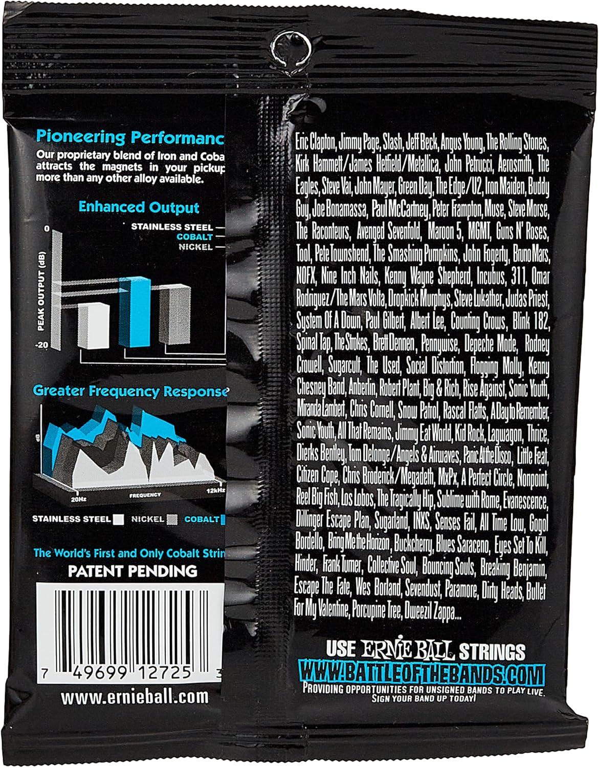 Engineered to maximize output and clarity, Ernie Ball Cobalt Slinky guitar strings are one of the latest innovations in string technology. Seeking to provide guitarists and bassists with a new voice, Cobalt strings provide an extended dynamic range, incredible harmonic response, increased low end, and crisp, clear highs. Cobalt provides a stronger magnetic relationship between pickups and strings than any other alloy previously available.
